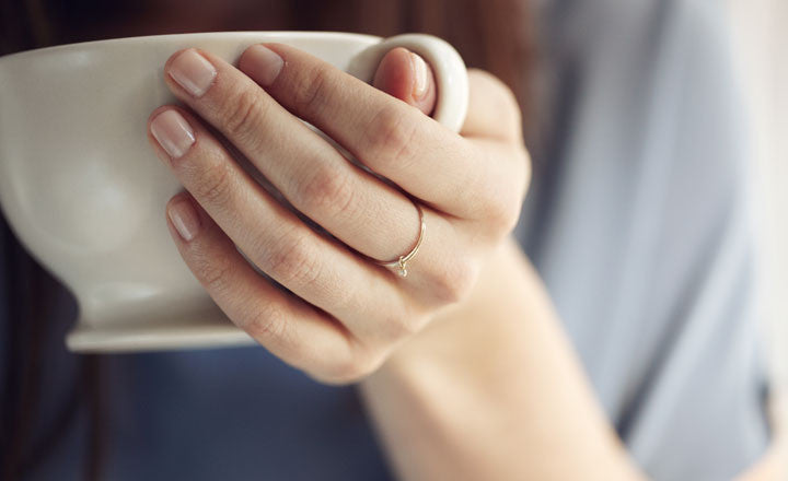 This is a diamond ring—but possibly the least traditional one ever. Three impossibly thin (but surprisingly sturdy) wisps of gold make up the band, and they're joined together by the cutest little diamond charm you've ever seen. Falls squarely into "new classic" territory, no?