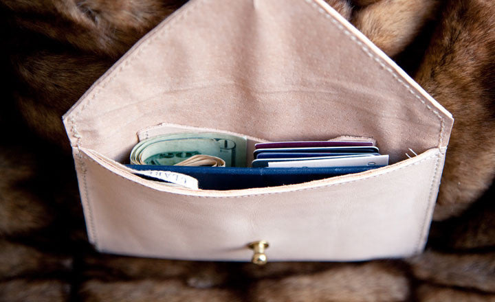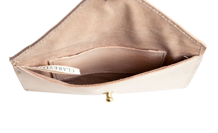 its best: a simple envelope-style design in elegant nude leather, with a