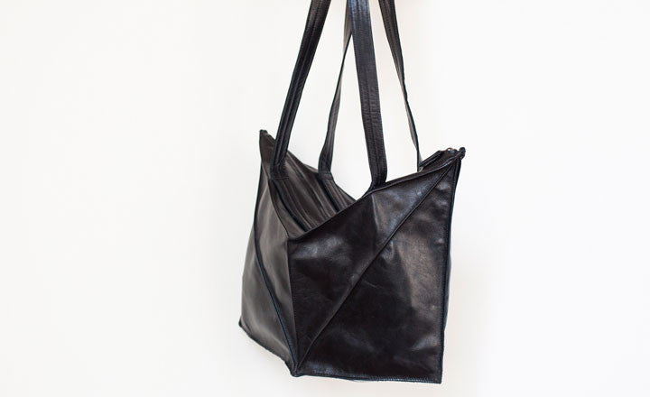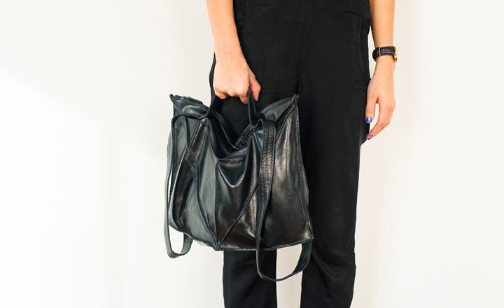 This black leather bag is the opposite of boring. Check out all those sweet angles! And then get a load of this geniusness: That geometric action is actually functional, allowing you to carry the bag multiple ways. Oh, and it even holds a laptop—yes, badass AND hard-working.