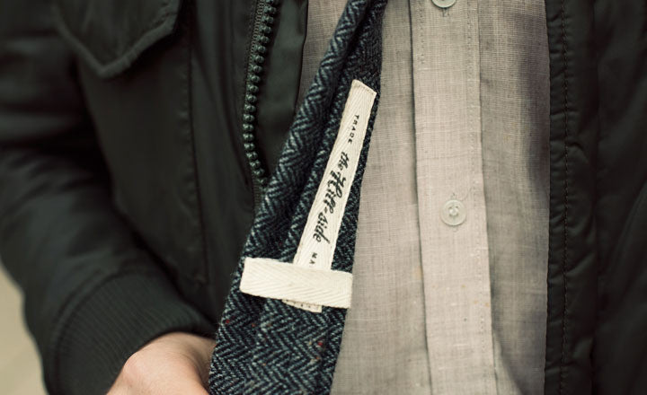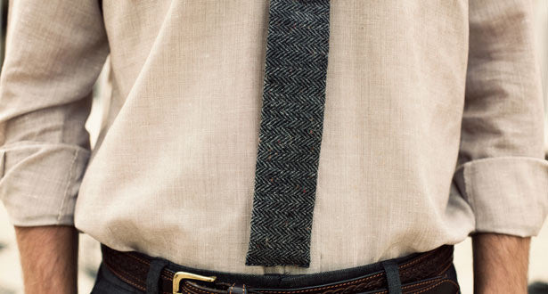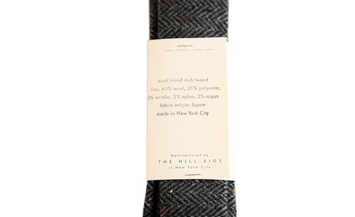 What to know: Measures 58 inches long; two inches across at its widest point; wool tweed.