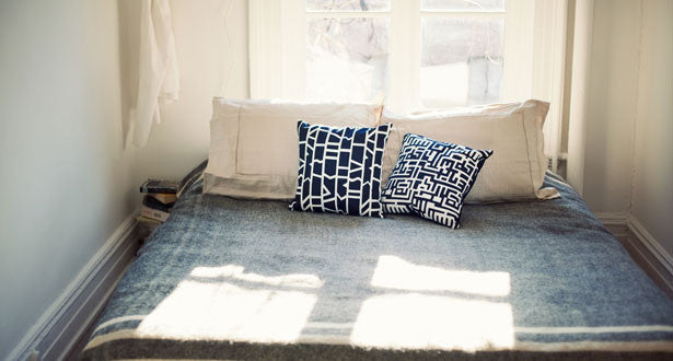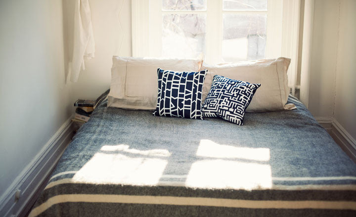 textile-design skills, she dreamt up this duo of white-screened throw