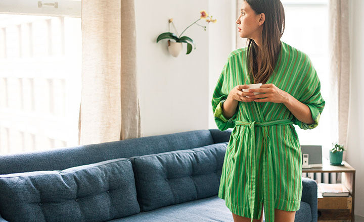 Wrapping yourself in this robe as you lounge around your house? Well, you'll feel a lot less lazy. And, get this: All four versions, with their custom, snuggly fabrics, are reversible—which will probably come in handy in the case of coffee spills? We're also pretty into the idea of wearing this out in the real world: Toss it on with a tank and jeans as a cool alternative to a cardigan.