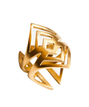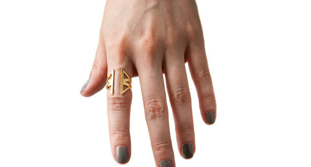 Most jewelry these days either puts up a super tough front with studs and spikes, or plays the classically feminine role, with the expected sparkle. But this ring, adjustable to fit on whichever finger of yours could use some decorating, strikes the perfect balance: It's laid-back enough to wear with, well, anything, but the striking, architectural form will get your hand grabbed by many a dinner companion. The 18-karat gold plated ring adjusts from size 5 to size 8. Each piece comes with a certificate of authenticity signed and numbered by the designer.