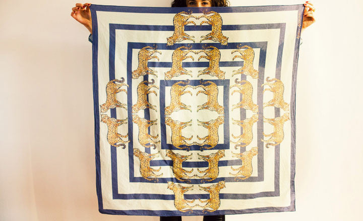 This scarf has a good sense of humor—which means that it lightens up any why-so-serious? getup you might be wearing. We're especially obsessed with how stellar this cotton voile number looks with a camel coat, but we embrace the idea of having two dozen cheetahs protecting us in pretty much any situation.