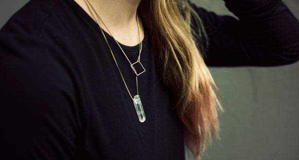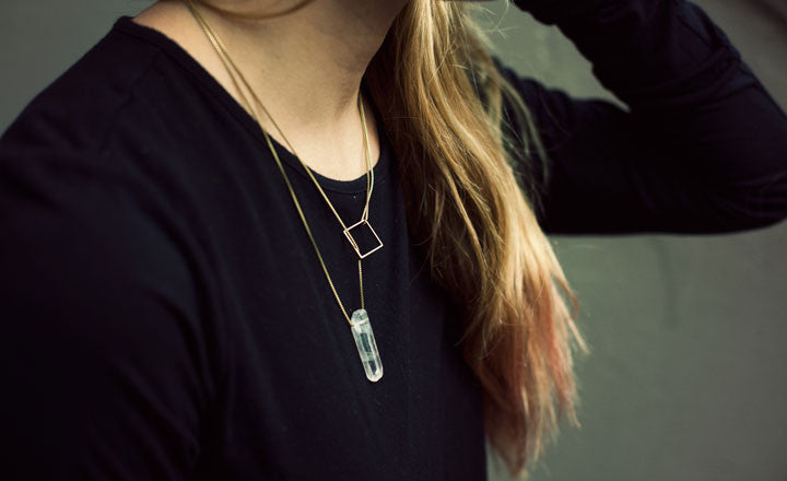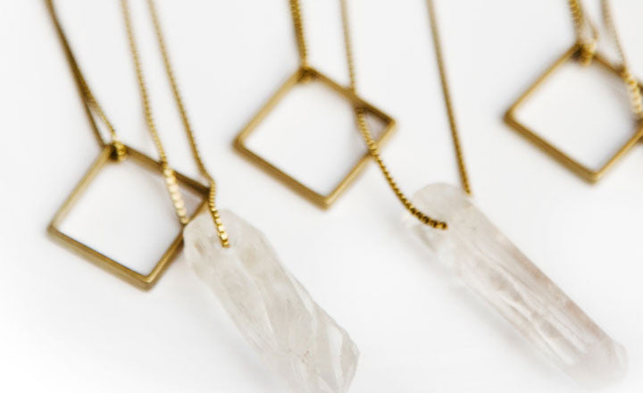 What to know: Chain measures 17 ½ inches long; quartz stones vary from 1 to 1 ½ inches long; necklace closes with a clasp in the back.