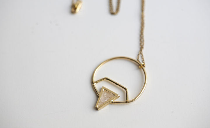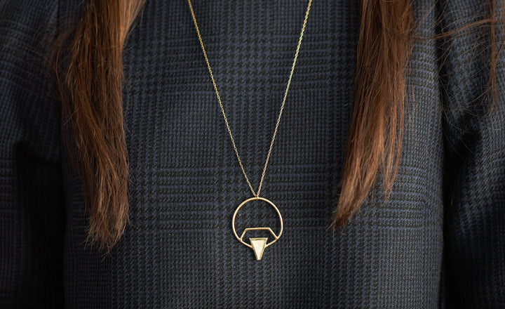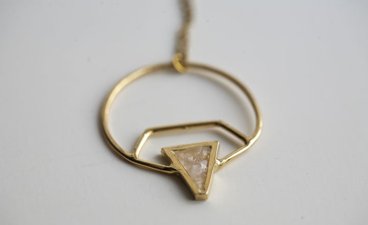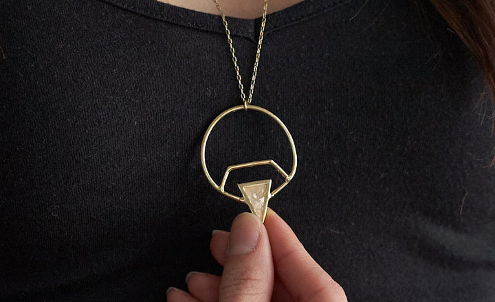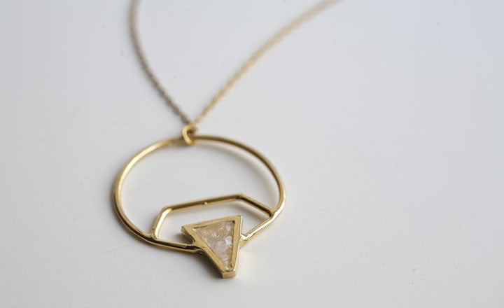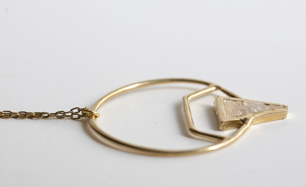 We love a pendant that looks like it could be the key to a secret, futuristic lair. And though we can't promise that this brass creation will grant you access to a fourth dimension, we can guarantee that, with its open form and quartz flecks, it will make you feel pretty special living in these three.