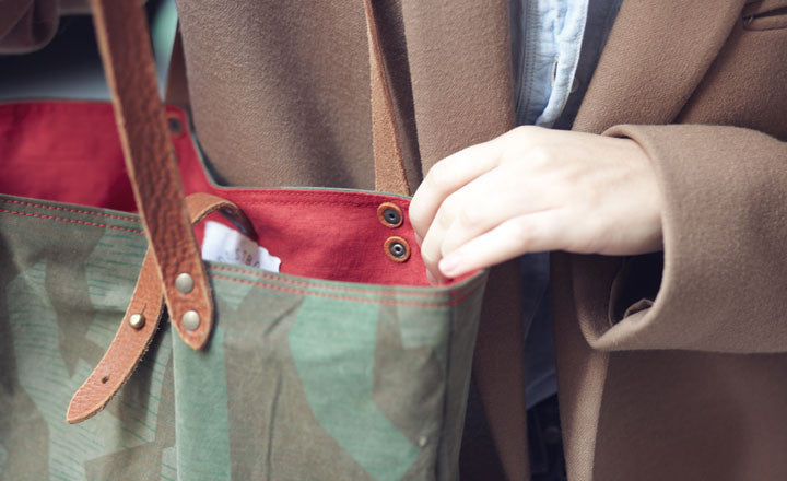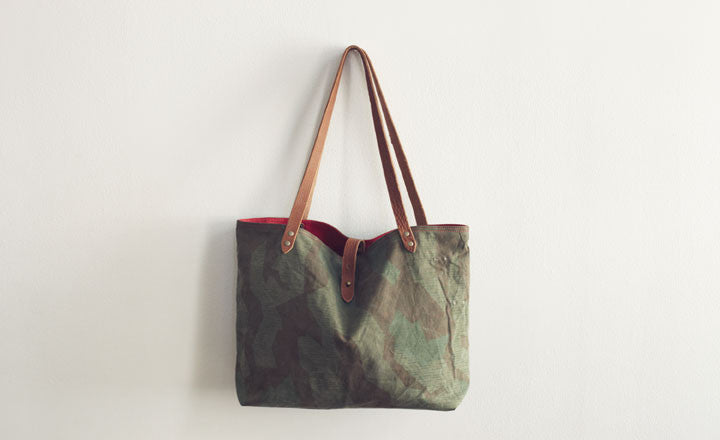 Camo is absolutely having a moment right now, but we love how freaking timeless this take is. There's the classic tote silhouette, the rich brown leather, and the fact that this Swiss camouflage has survived 70 years—it's from WWII! The bright red lining? It keeps 'em guessing.