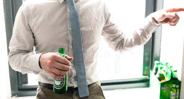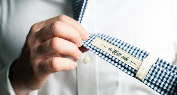 At first glance this might seem like a basic gingham tie. But look closer: It is made from a piece of found seersucker fabric, cut from one end to the other, leaving the selvedges (or fray-resistant borders) intact. The squared-off tip adds some personality as does the super-thin pink line that frames the bottom edge—meaning that the 2-inch-wide accessory will make your look stand out, even if you team it with the most classic white shirt and a pair of slim-cut chinos. Each tie comes with a certificate of authenticity signed and numbered by the designers.